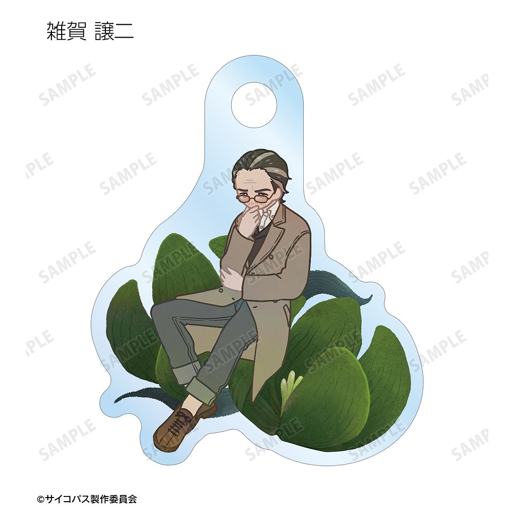 常守 朱、狡噛 慎也、宜野座 伸元、六合塚 弥生、唐之杜 志恩、霜月 美佳、雛河 翔、須郷 徹平、花城 フレデリカ、雑賀 譲二、煇・ワシリー・イグナトフのイラストをボタニカルデザインに落とし込んで繊細なタッチで新たに描き起こし、ダイカットのアクリルチャームに仕上げました。