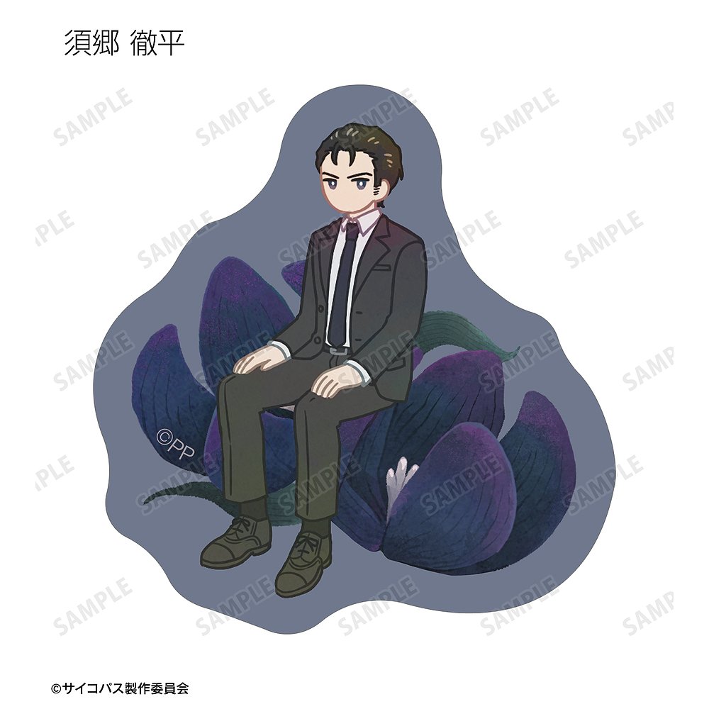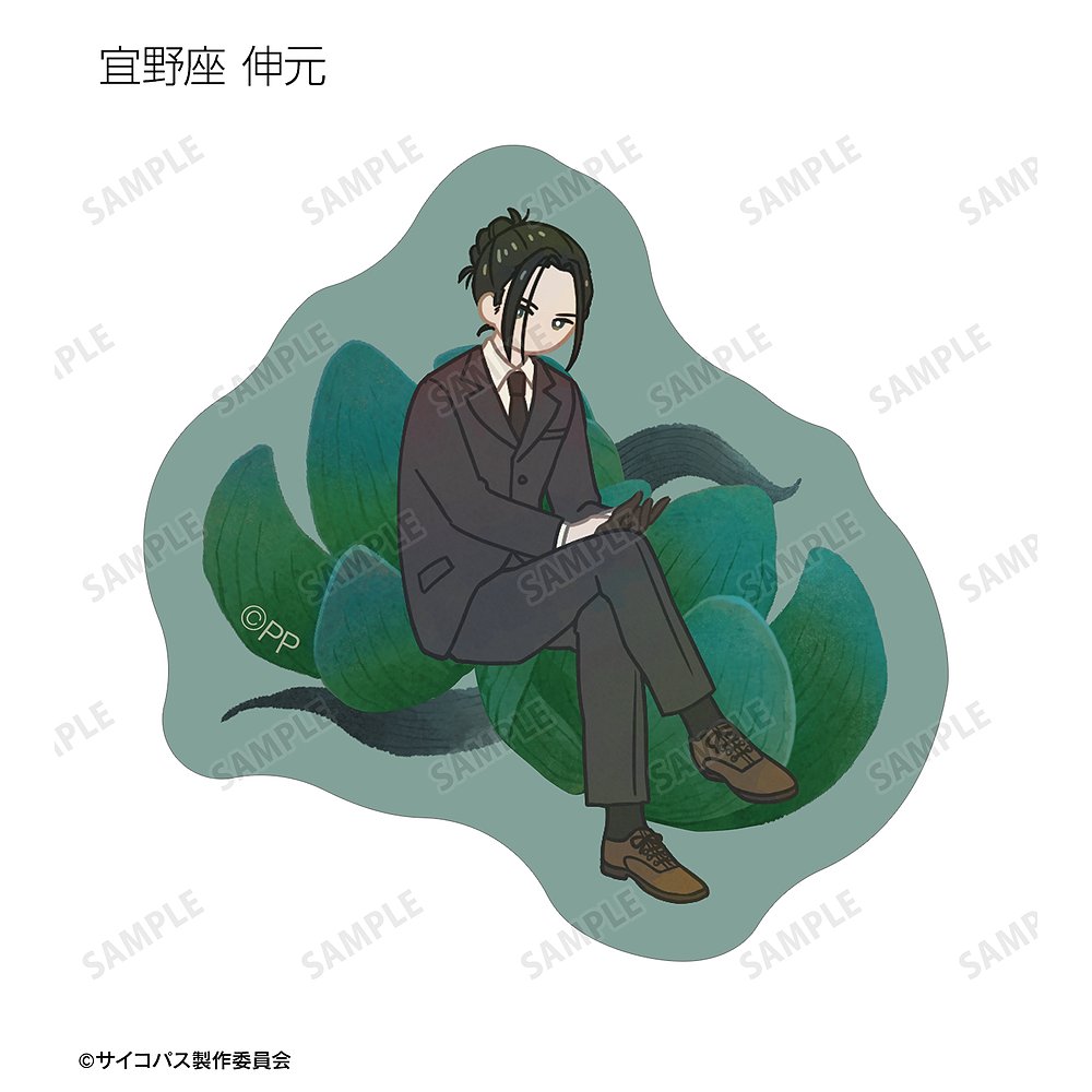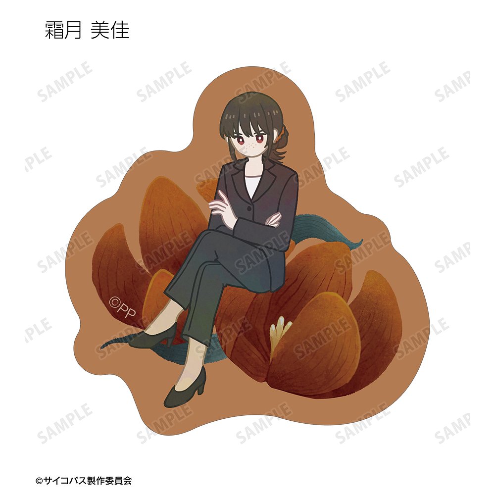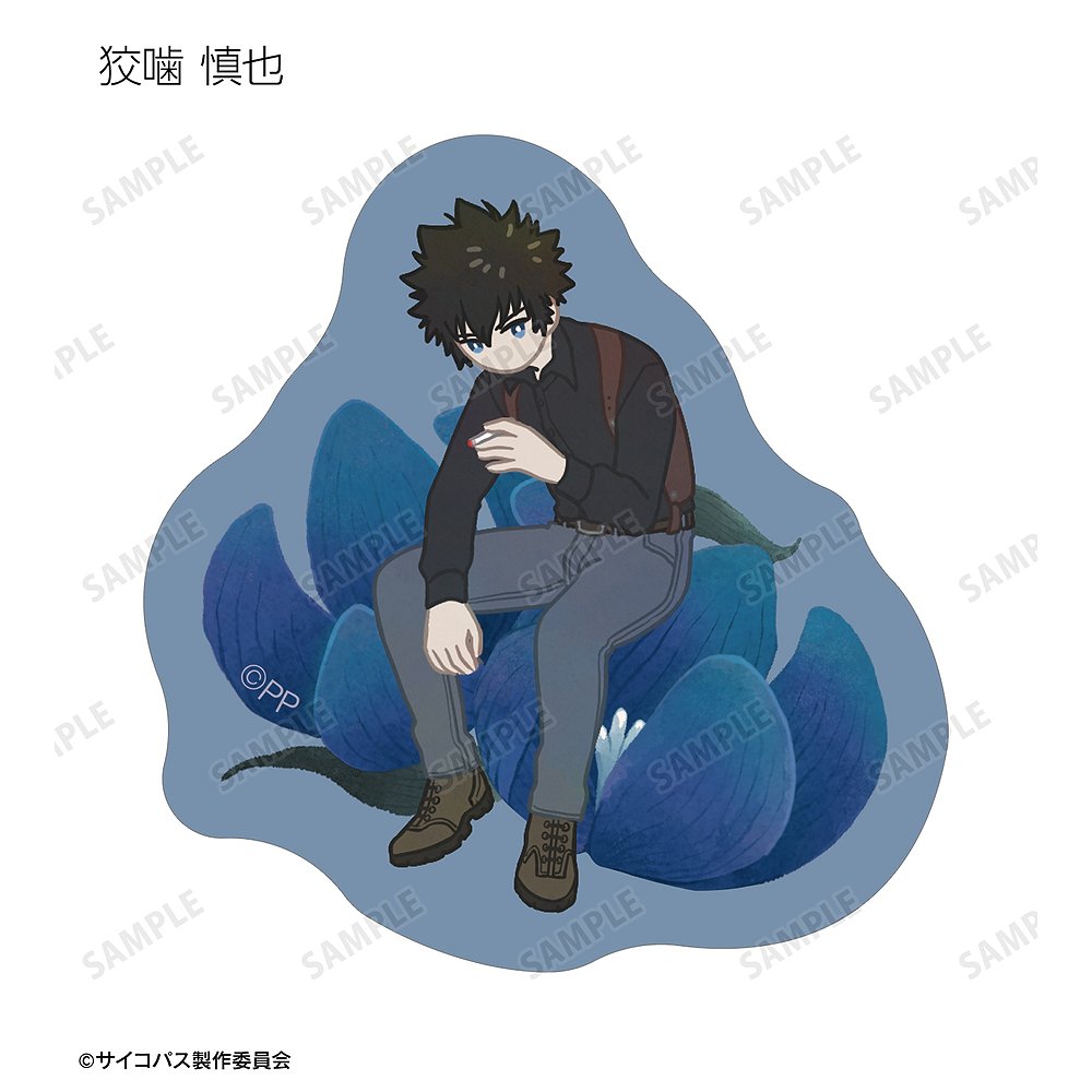 常守 朱、狡噛 慎也、宜野座 伸元、六合塚 弥生、唐之杜 志恩、霜月 美佳、雛河 翔、須郷 徹平、花城 フレデリカ、雑賀 譲二、煇・ワシリー・イグナトフのイラストをボタニカルデザインに落とし込んで繊細なタッチで新たに描き起こし、フレークシールに仕上げました。