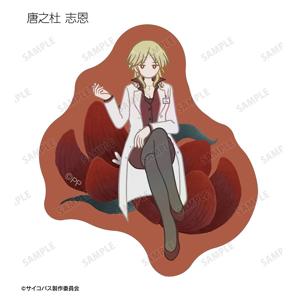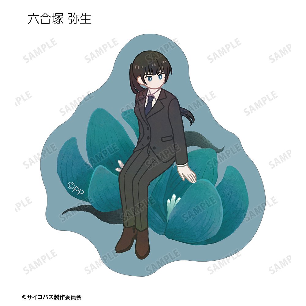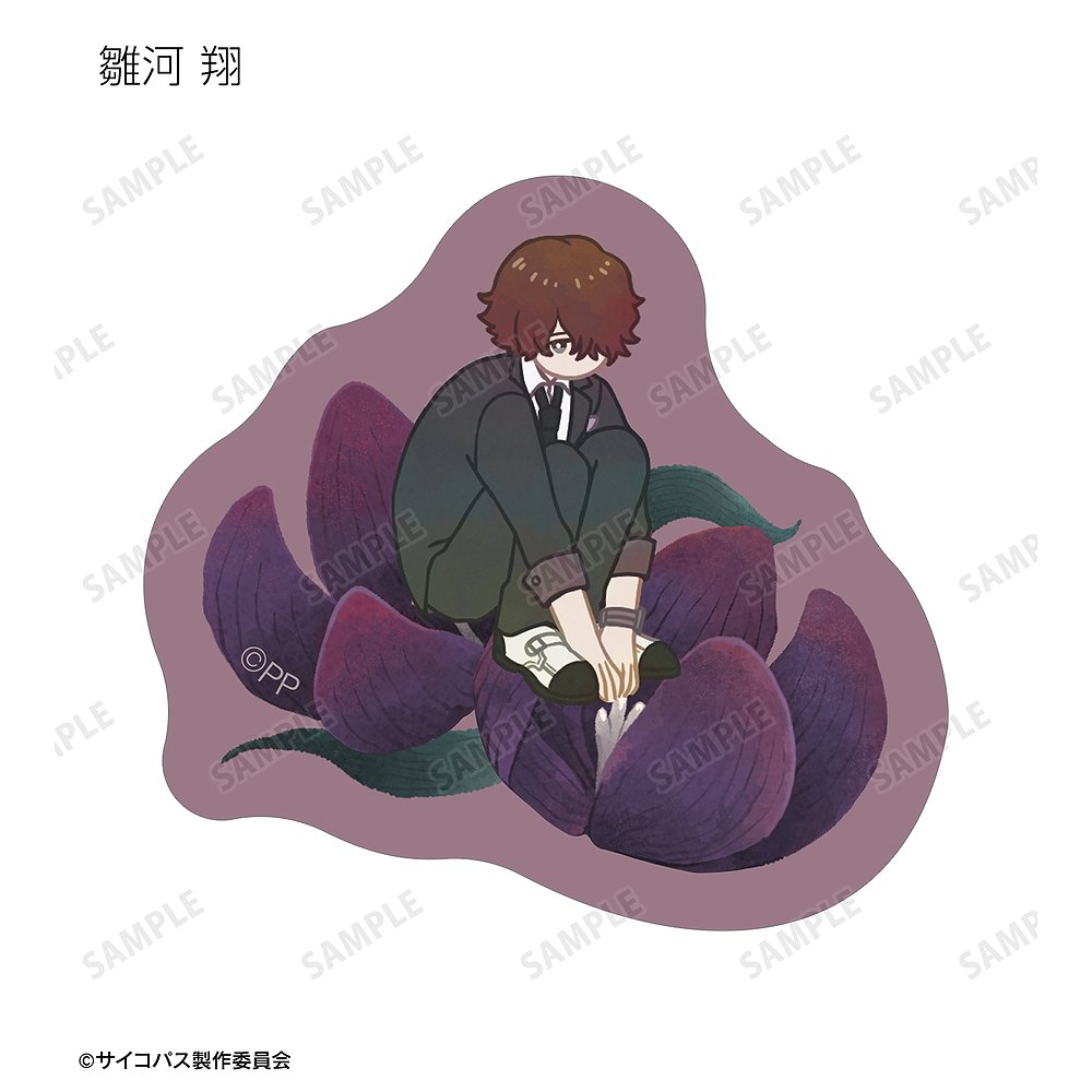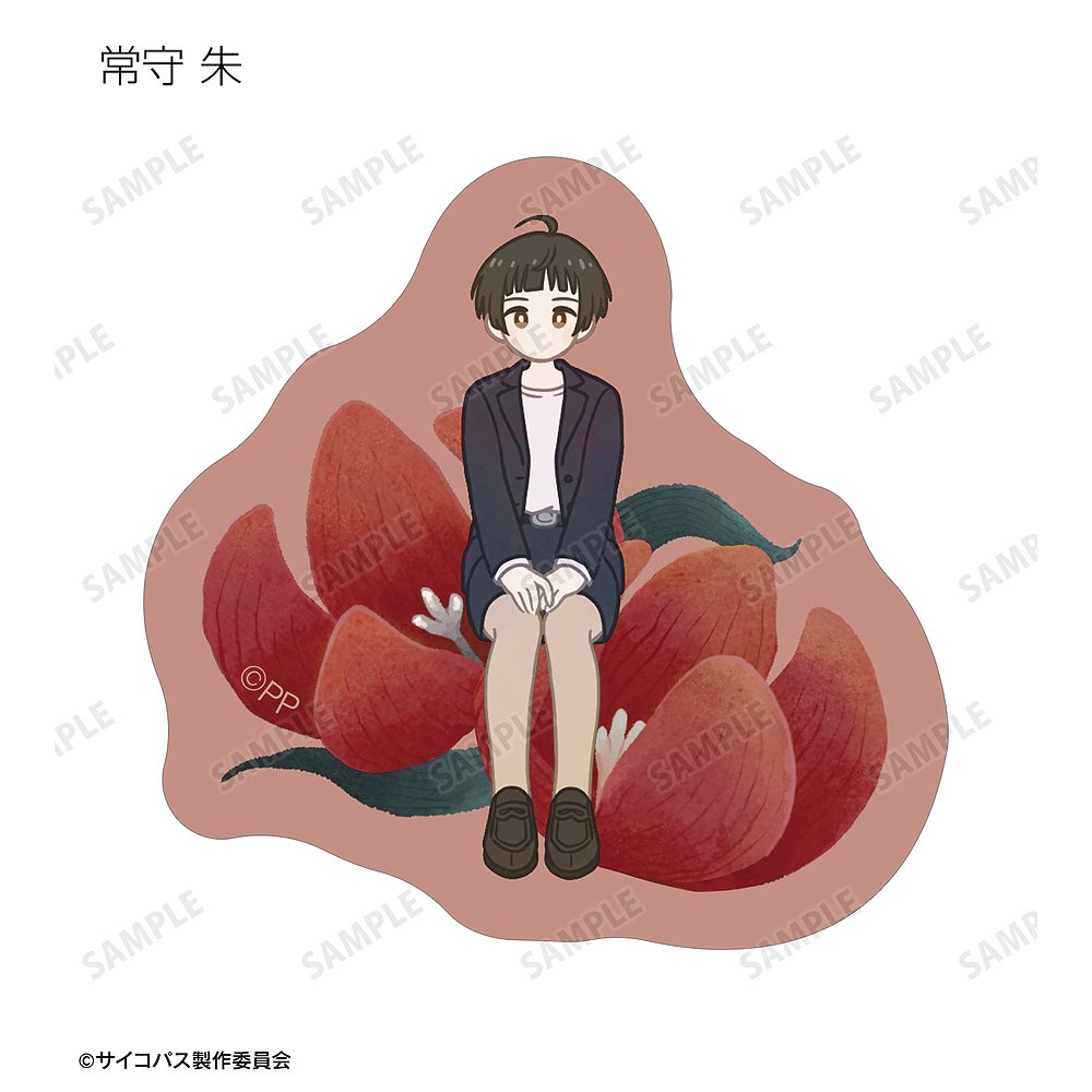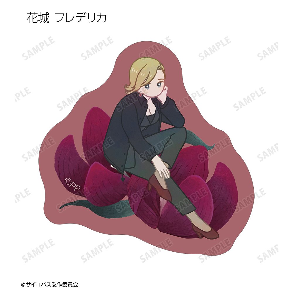 常守 朱、狡噛 慎也、宜野座 伸元、六合塚 弥生、唐之杜 志恩、霜月 美佳、雛河 翔、須郷 徹平、花城 フレデリカ、雑賀 譲二、煇・ワシリー・イグナトフのイラストをボタニカルデザインに落とし込んで繊細なタッチで新たに描き起こし、フレークシールに仕上げました。
