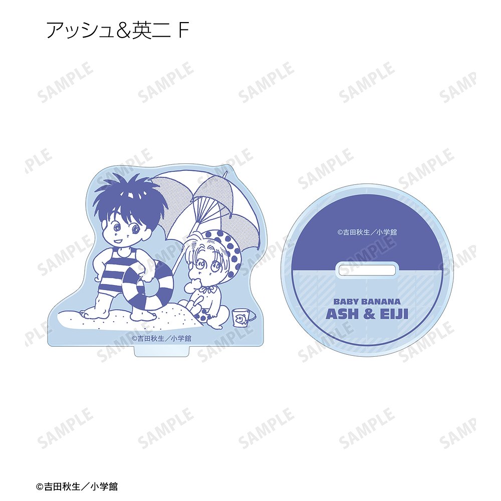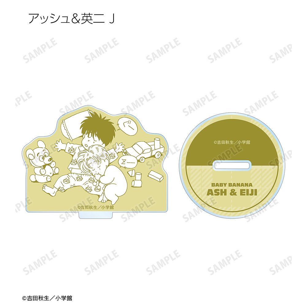アッシュ・リンクス、奥村英二のBABY BANANAのイラストを、柔らかなパステル調のアクリルスタンドに仕上げました。
